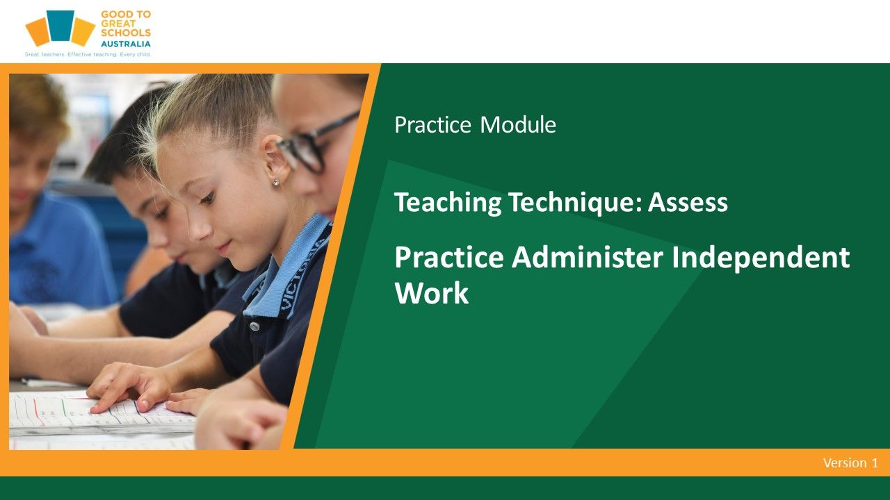 Practice Administer Independent Work a practice module that goes in depth for participants to learn what happens when the technique is delivered with fidelity. They learn what happens when administering independent work is not delivered with fidelity. The barriers and how to overcome the barriers to administer independent work with fidelity.