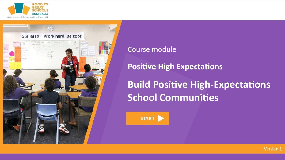 The “Build Positive High-Expectations School Communities” module by GGSA is a teacher professional learning course that gives you the tools to cultivate a high-expectations culture in your school, encouraging positive behaviour and community engagement. It emphasises the importance of social and emotional learning to develop prosocial behaviours and self-regulation.